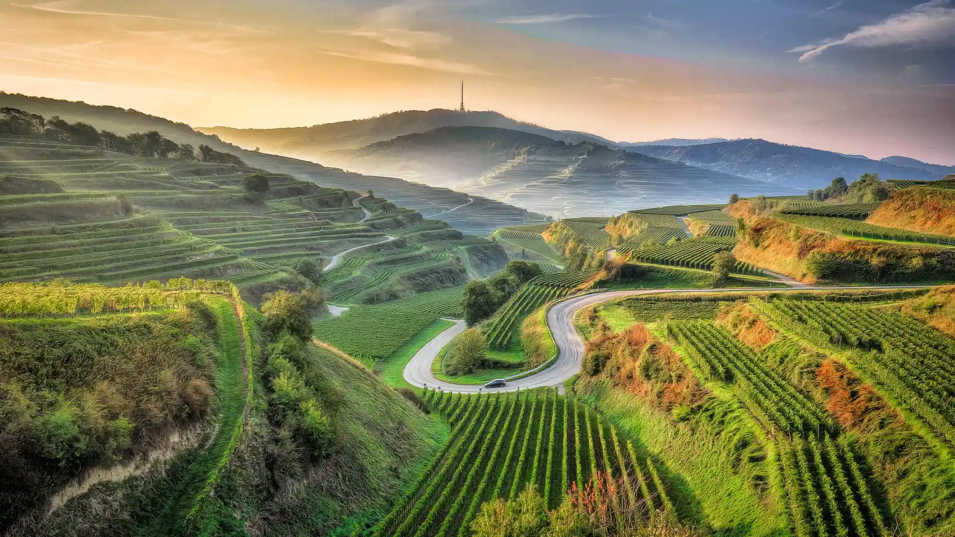凯撒施图尔山是巴登-符腾堡州南部一座低矮的小山脉,靠近弗莱堡,是德国阳光最充沛的地区之一。凯泽斯图尔因奥托三世皇帝于994年在此统治而得名。这片风景如画的地区是自然爱好者、寻求放松身心人士以及葡萄酒鉴赏家的天堂。肥沃的土壤和温和的气候,使灰皮诺和黑皮诺等葡萄品种在这里茁壮成长。过去的火山活动留下了富含矿物质的土壤,赋予了该地区葡萄酒独特的风味。连绵起伏的丘陵、田园诗般的村庄以及包括珍稀绿蜥蜴在内的多种野生动物,使凯泽斯图尔成为自然爱好者的迷人目的地。