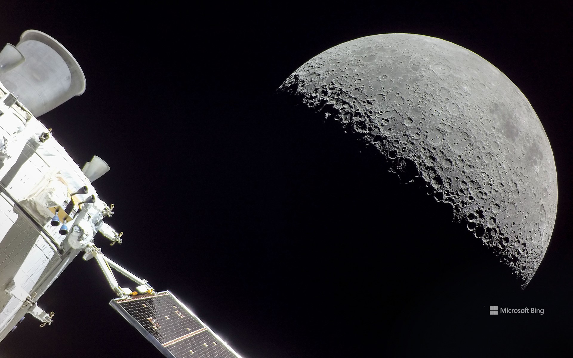 从美国宇航局猎户座飞船上看到的月球 The moon seen from the Orion spacecraft of NASA's Artemis mission (© NASA)